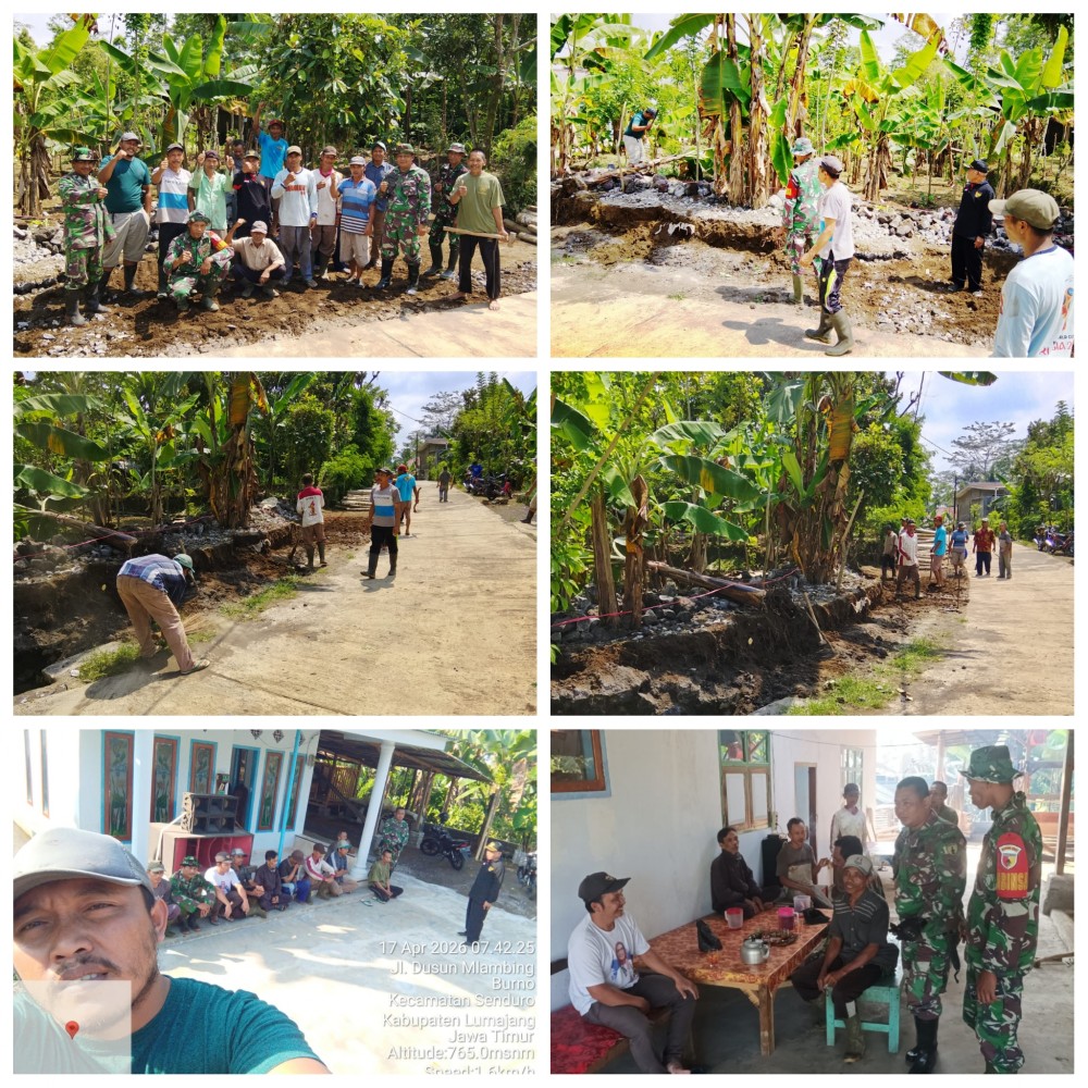 Kerja bakti ini tidak hanya melibatkan masyarakat setempat, tetapi juga mendapat dukungan dari anggota TNI yang berasal dari Koramil Senduro. Kehadiran para tentara tersebut menambah semangat warga dalam melaksanakan kegiatan, sekaligus mempererat hubungan antara masyarakat dan aparat.